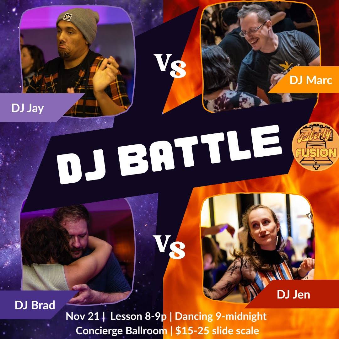 - 9 PM-Midnight: Social Dancing & DJ Battle
